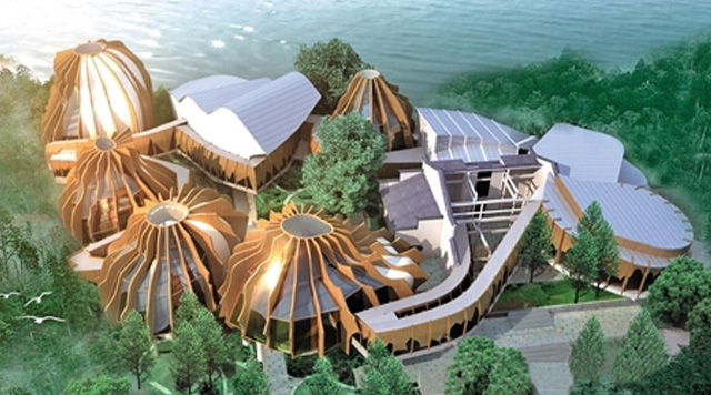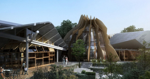 張大千博物館位于內(nèi)江市東桐路圓頂山,規(guī)劃建筑面積2778平方米,含5個(gè)展廳及一個(gè)報(bào)告廳、多媒體信息區(qū)、休閑平臺,項(xiàng)目總投資7000多萬元。由上海世博會西班牙館設(shè)計(jì)事務(wù)所EMBT打造,為“中西合璧”的建筑風(fēng)格,其內(nèi)5個(gè)展廳的平面似畢加索為張大千所畫“西班牙牧童”,剖面又像代表中國文化符號的“葫蘆形”,整體形態(tài)以張大千山石、仕女畫為原型,外殼“脊梁”則似張大千飄逸的胡須,又似一道道“飛天”的彩帶。張大千博物館設(shè)計(jì)方案一出臺,就獲得了世界建筑“諾貝爾獎(jiǎng)”——“文化建筑獎(jiǎng)”。