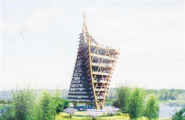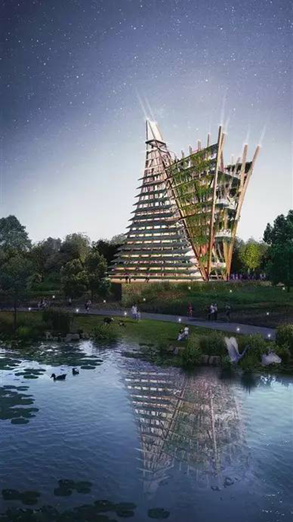 作為“四館一閣兩中心”的“一閣”, 清泉閣臨湖而建,建筑面積1532㎡,建筑高度75米,是園博園中最高的單體建筑,也是園博園的主要建筑群。